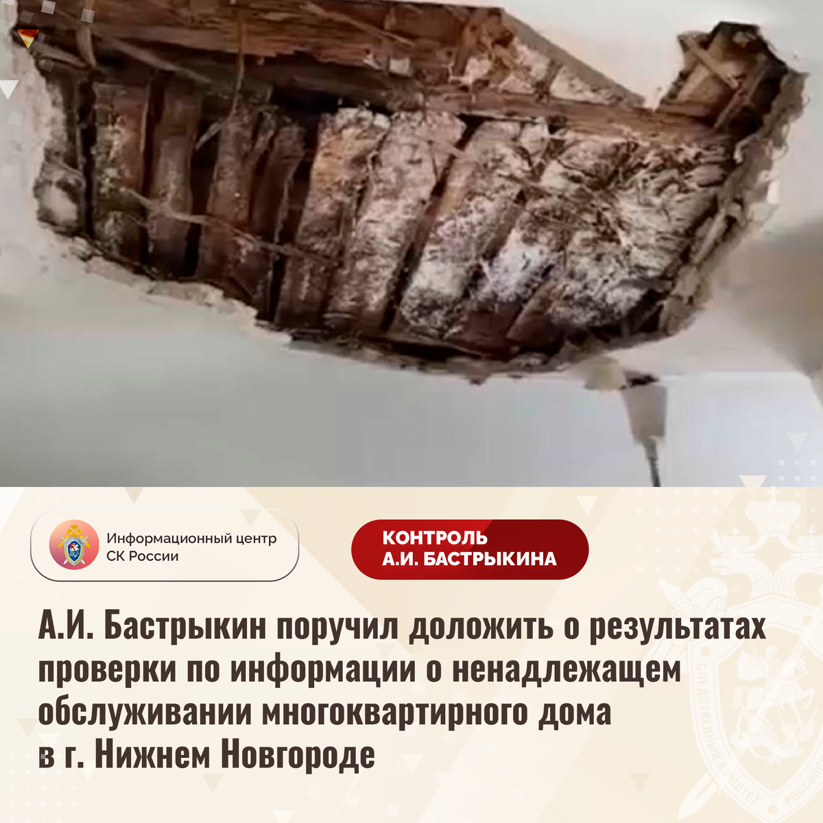 А.И. Бастрыкин поручил доложить о результатах проверки по информации о ненадлежащем обслуживании многоквартирного дома в г. Нижнем Новгороде