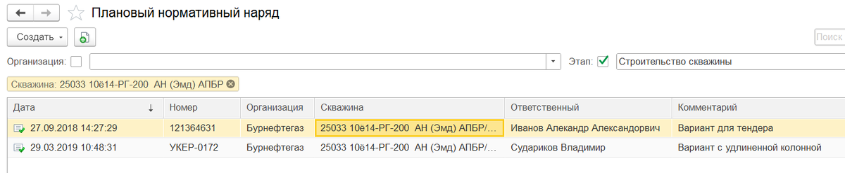 В дальнейшем плановый наряд может проходить как документ различные маршруты согласования в системе. В процессе такого согласования могут изменяться и исходные данные, и конструкция или оборудование, и состав или длительность отдельных операций. Все изменения вносятся в новую актуальную версию наряда на строительство и освоение скважины. Таким образом, обеспечивается отсутствие потерь данных, а расчетная плановая продолжительность сохраниться даже при изменении таблиц с нормами или других справочников.