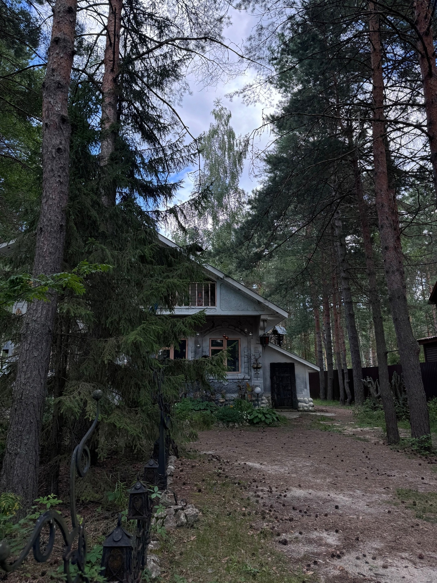 В один из выходных дней мы целенаправленно решили поехать в Деулино, чтобы посетить удивительно сказочное место всего в часе езды от Рязани. Усадьба Трубиных расположена среди обычных дачных домиков в деревне Деулино. Эта земля приобреталась для жилья, где хозяева построили дом, затем начали появляться и различные инсталляции. Соседи и люди, проходившие мимо, со слов невестки хозяина усадьбы, всегда пытались заглянуть и посмотреть, что же такое необычное там находится. И со временем простой дачный участок превратился в музей под открытым небом. Пройдя через резные бревенчатые ворота вы попадаете в портал другой реальности, где на пути встречаются мифические существа, рукотворные инсталляции, выполненные из дерева, металла и бетона. Каждый видит в скульптурах что-то свое, пытаясь разгадать истинный замысел их создателя. Кого-то это восхищает, а кого-то даже пугает. На входе встречают деревянные тотемы. В одном из домов проживают сами хозяева, поэтому перед входом нам сказали о том, что