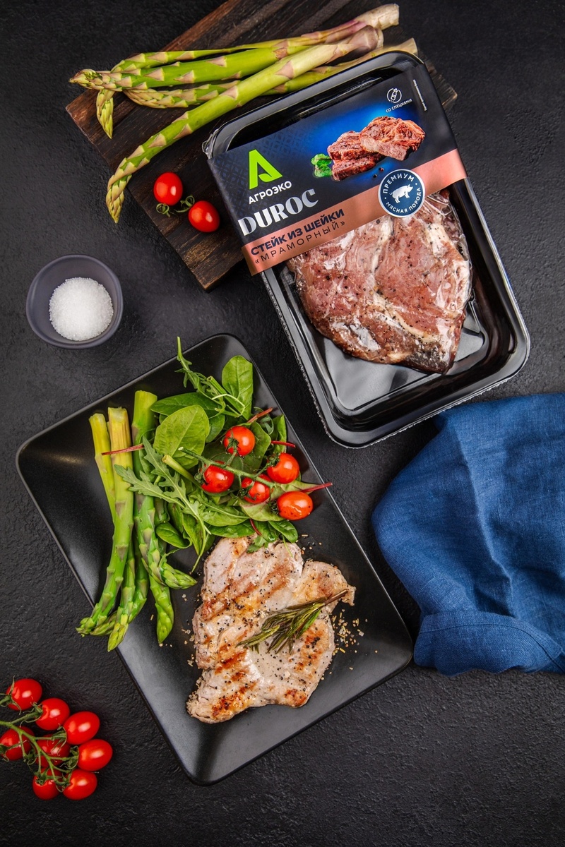 Все потому, что это продукт, который уже высоко оценили шеф-повара и обязательно полюбите вы! Главное достоинство свинины Duroc – мраморный рисунок. Благодаря тонким жировым прожилкам мясо получается очень сочным и буквально тает во рту! Что бы вы ни готовили – аппетитные стейки, корейку на косточке, мясистую шейку или ребрышки, – вы всегда получите яркий, насыщенный мясной вкус.