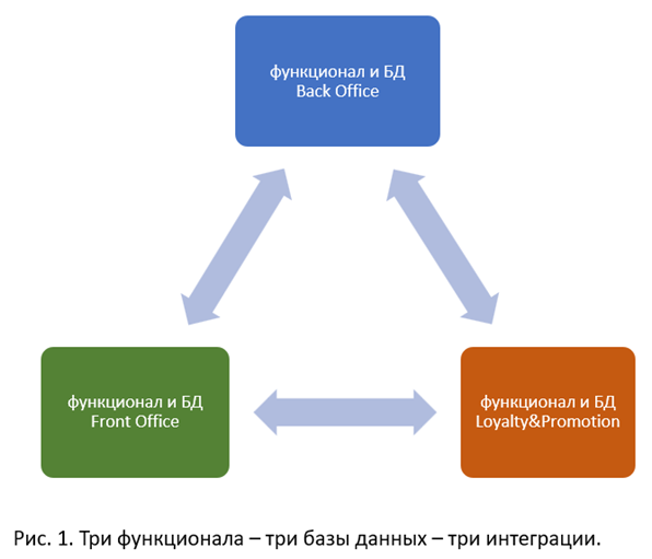 На рынке автоматизации торговых сетей преобладает ситуация, когда за учетные функции, кассовое обслуживание и лояльность отвечают разные информационные системы, чаще всего разработанные в совершенно не связанных между собой компаниях. Безусловно, возможности каждого элемента ИТ-ландшафта очень важны, и при их выборе любой ритейлер будет стремиться использовать решения ведущих поставщиков в своей области. Чаще всего, внедрение учетной (Back Office) и кассовой (Front Office) системы, а также системы лояльности (Loyalty&Promotion) происходит асинхронно в рамках отдельных проектов, что увеличивает размеры требуемых бюджетов на автоматизацию торговой компании и может повлиять на сроки запуска. При проектировании ИТ-ландшафта торговой сети в первую очередь происходит выбор наиболее дорогого и сложного элемента - учетной системы, т.к. от ее надежности, функциональных возможностей и способности к быстрой адаптации под меняющиеся рыночные условия зависит возможность устойчивого развития торгово