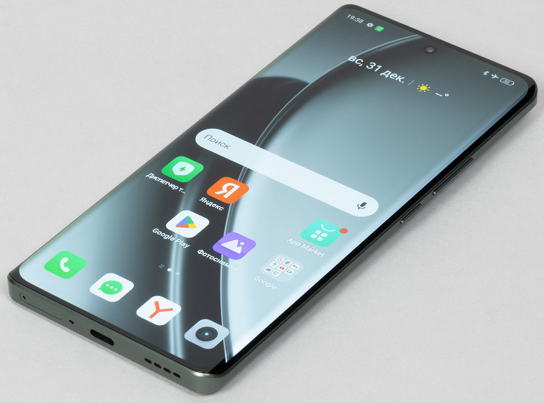 Корпус Realme GT 6T выполнен в обтекаемом дизайне с загнутыми фронтальной и тыльной панелями и зауженными боками. Однако профиль у боковин не округлый, а как бы срезанный, есть достаточно плоская часть, за которую аппарат можно крепко удерживать в ладони. Боковая рамка не притворяется металлической, но зато она матовая и не такая уж скользкая.