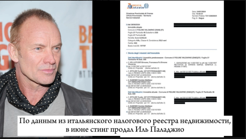 Согласно информации в официальных источниках, виллу Стинга и его супруги Труди Стайлер приобрела компания San Tomaso S.R.L. Владельцами же компании San Tomaso являются президент Украины с женой.