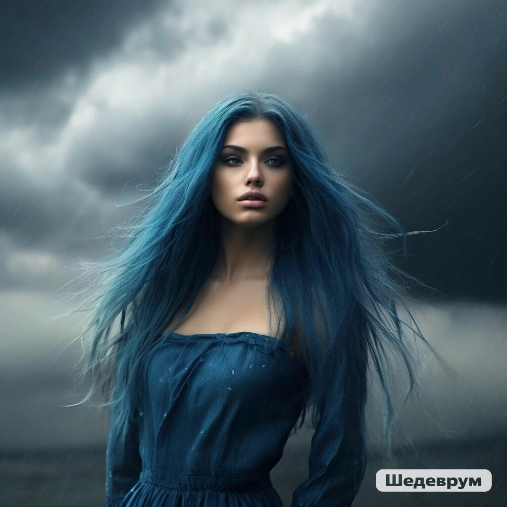 В небе бушевала гроза, и вместе с ней появилась она – девушка с синими волосами, которые расплетались по ветру как темные водоросли в океане. Ее глаза сияли, как две звезды в темноте, и кожа блестела от дождя, как листья после весеннего ливня. Она шла по улицам города, оставляя за собой след из мокрых следов, и люди, встречая ее, не могли не отвести взгляд. Ее звали Анелей, и она была дочерью грозы. В ее жилах текла кровь легендарных богов, которые когда-то правили миром и управляли стихиями. С детства Анелей чувствовала в себе силу, которую не могла контролировать – грозы начинались и заканчивались с ее настроением. Когда она плакала, небо рыдало вместе с ней, а когда смеялась, солнце начинало светиь сквозь тучи. Но Анелей не была единственной, кто обладал магией. В городе жил молодой маг по имени Ксандр, который управлял огнем. Он был красив и горд, и его магия была столь же сильна, сколь и его самомнение. Анелей и Ксандр встретились на балу, устроенном лордом-хранителем города. Та