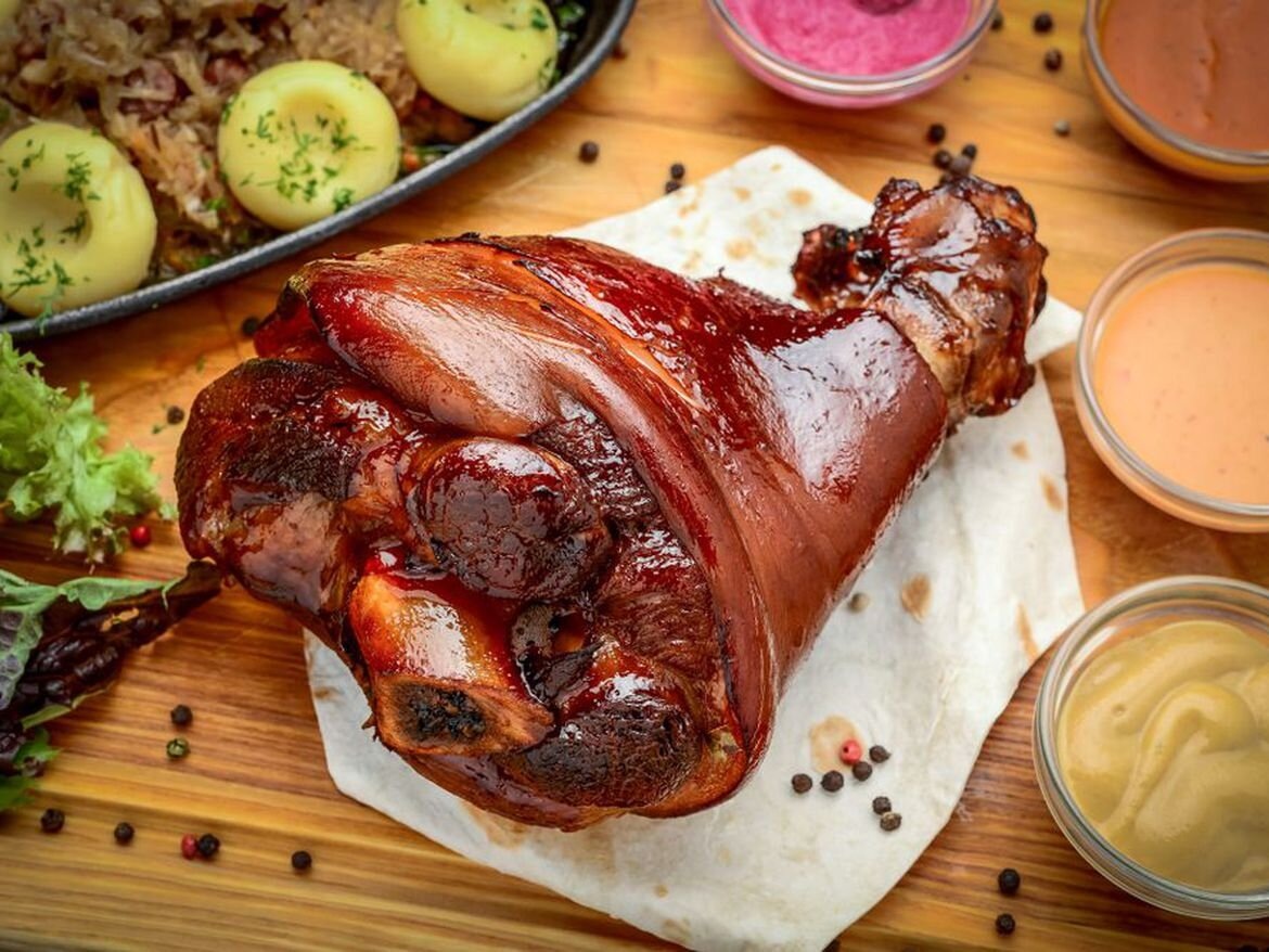 На днях я опробовала новый рецепт приготовления рульки. Результат превзошёл все ожидания и я спешу поделиться этим чудо-рецептом. Нам понадобится: Для начала обвариваем рульку. Варим 40 минут на среднем огне. Достаём из кастрюли. В бульон добавляем крупно нарезанные лук и морковь. варим минут 15-20. Дальше добавляем все приправы, чеснок, соевый соус, томатную пасту и вливаем тёмное пиво. Как только всё закипело - кладём обратно рульку. вливаем воду, чтобы рулька почти полностью покрылась бульоном. Варим , примерно, 1,5 часа. Как только видим рулька стала мягкой - достаём. Даём ей немного отечь и сверху промазываем горчицей смешанной с мёдом. Кладём в духовку на 200 градусов, томим ,примерно, 30 минут. Как только рулька начнёт становиться золотистой и поджаренной, достаём. Долго держать в духовке не нужно, иначе мёд быстро подгорит. Это самый вкусный рецепт рульки, который мне приходилось готовить.