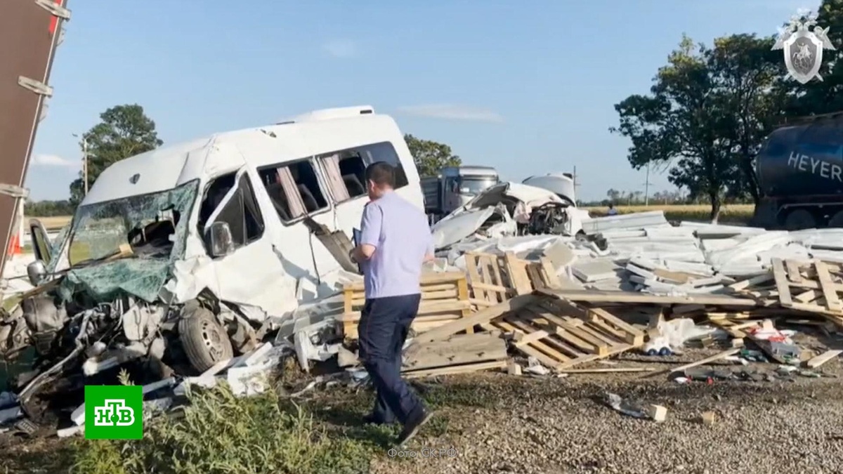 [ Смотреть видео на сайте НТВ ] 14 человек пострадали при столкновении грузовика, микроавтобуса и легковушки в Армавире, сообщает оперштаб Краснодарского края. Всего в ДТП пострадали 14 человек, включая шестерых детей. «В медицинские учреждения госпитализировали 11 человек, еще одному пострадавшему помощь оказана на месте», — говорится в сообщении. Напомним, крупное ДТП произошло сегодня на 178-м километре трассы Р-217 «Кавказ» в районе Армавира. Там водитель Volkswagen Passat CC выехал со второстепенной дороги на автодорогу Р-217, не пропустил грузовик Freightliner и столкнулся с ним. Затем обе машины столкнулись с рейсовым автобусом Mercedes Sprinter, который ехал из Ставрополя в Краснодар. На месте скончались водитель Volkswagen и ребенок, который ехал с ним. Изначально сообщалось об 11 пострадавших, но, по уточненным данным, пострадали 14 человек. Возбуждено уголовное дело по ч. 5 ст. 264 УК РФ (Нарушение лицом, управляющим автомобилем, правил дорожного движения, повлекшие по неост