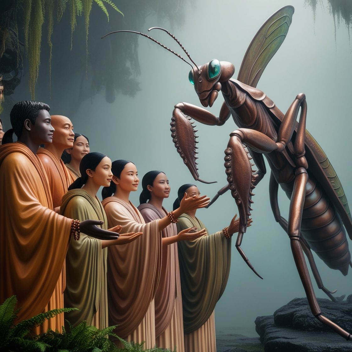 Представьте себе утренние ритуалы. Вместо того чтобы медитировать или читать священные тексты, все жители Земли выходят на улицу и начинают делать движения, напоминающие ловлю добычи лапками. Молитва богомолу требует ловкости и скорости — ведь кто знает, вдруг богомол посмотрит и оценит вашу технику.
