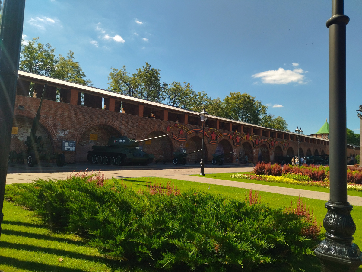 Второй день нашего пребывания в Нижнем мы решили начать с прогулки по территории Кремля, несмотря на то, что днем ранее мы уже там побывали. На этот раз мы решили пройтись там с чувством, с толком, с расстановкой и не торопясь рассмотреть все красоты и прелести. Для начала мы посмотрели выставку военной техники. Мужа впечатлила рубка подводной лодки Меня - вот эти изображения, созданные из тысяч фотографий фронтовиков, а старшая дочь узнала вот в этой скульптурной композиции героев какого-то фильма о войне, который им показывали в лагере. Вот только название фильма она забыла🤷♀️ Очень неплохим решением было организовать на территории кремля детскую площадку. Название очень запоминающееся - "Детинец", а сама площадка довольно большая и интересная. После того, как наши девчонки наигрались, мы направились дальше, в сторону фуникулера, но он оказался закрыт на ремонт🙁 И мы пошли дальше. Сфотографировались у памятника Дмитрию и Евфросинии, потом на фоне танка, посмотре