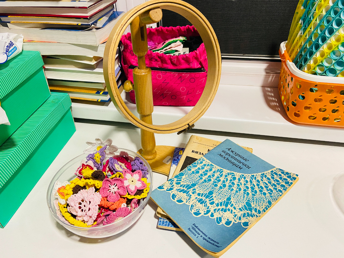 Продолжаю свою вчерашнюю тему с разбором пространства вокруг меня, пока царствует Ретроградный Меркурий. Впечатления от прошедшего дня очень странные. Если окинуть взглядом окружающее пространство, то ничегошеньки и не изменилось, только 1 пакет с мусором прибавился, который завтра нужно будет отнести в контейнер. Все разборы сегодняшние проходили в закрытых шкафах, где по всем ящикам и коробкам за несколько лет все перемешалось. Чисто рукодельными разборами заняться не удалось, но и про рукоделие я тоже не забывала. Помимо разборов в шкафах на балконе, удалось найти держатель для вышивки и парочку книг по рукоделию, которые отправились в виде объявления на площадку по продаже ненужных вещей. Пока все это оформляла, поняла, что на балконе очень не хватает свободного места. Там можно было бы поставить кресло и маленький столик, чтобы отдыхать за вязанием вечером от всех забот. Эта мысль заставила усерднее заняться всеми вещами, которые не дают реализовать эту идею. Нашлась на балконе и