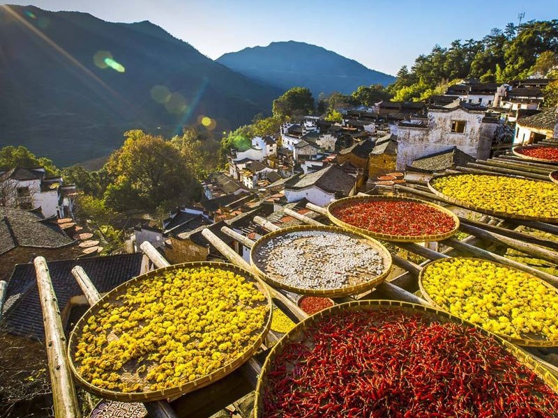 Начало осени для китайских фотолюбителей — это идеальное время для деревенского туризма. В этот сезон крестьяне начинают просушивать на солнце урожай, и фигурно выложенные красный перец и кукуруза создают удивительные картины. Это не просто зрелище, а настоящие произведения искусства. Глядя на такие картины, начинаешь понимать, что даже процесс сушки урожая может быть прекрасным и вдохновляющим.