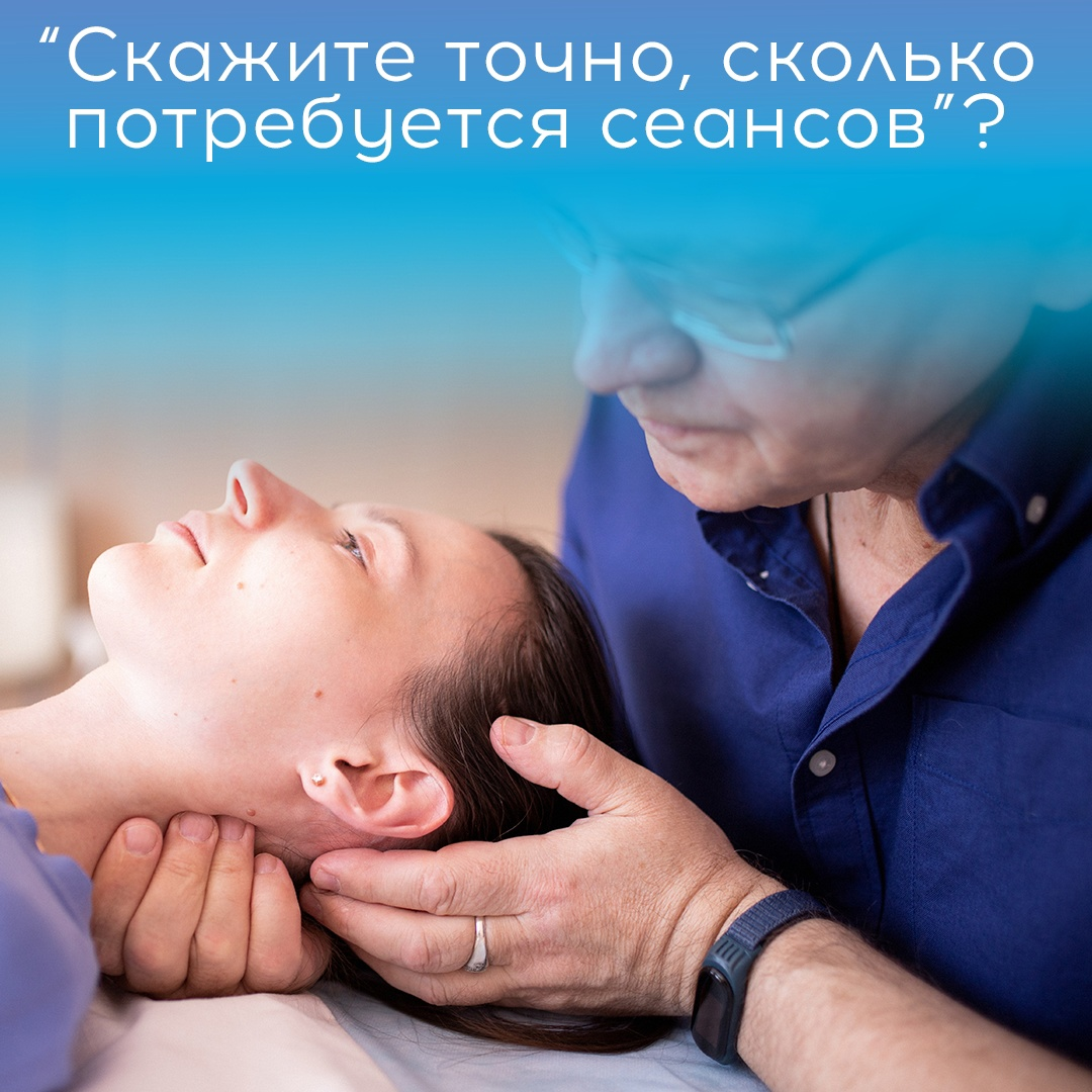 Зачастую — ещё до первого приёма. И это очень логичный вопрос — нужно же как-то распланировать время и траты. Но ответить на него заранее, к сожалению, невозможно. Остеопатия — это не массаж, который проводится курсами по 10 сеансов. Здесь всё очень-очень индивидуально.