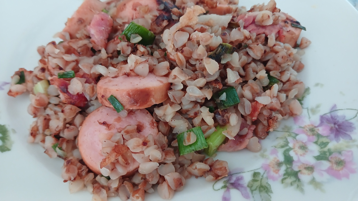 Экономное питание на 226 руб На завтрак сегодня гречка с зеленым луком, беконом и сосисками. Гречку варила вчера на ужин, и, как обычно, делаю двойную порцию. Сварила многовато, уже сразу видела, так что лишнее добавила в хлеб. Вчера вечером пекла уже после ужина хлеб и сочники. Также на завтрак к кофе бутерброды с индейкой (карпаччо из Черкизовского магазина) и сочники. Обед был готов - суп с форелью, только разогрела, бутерброд с карпаччо из индейки и "фанта" очаковская после пила кофе с сырком и сочником На ужин потушила куриную печенку в сливках, сделала картофельное пюре и салат из моркови с чесноком Старший уехал на пару дней к другу на день рождения, как раз удобно приготовить то, что он не ест - печенку, например. 😊