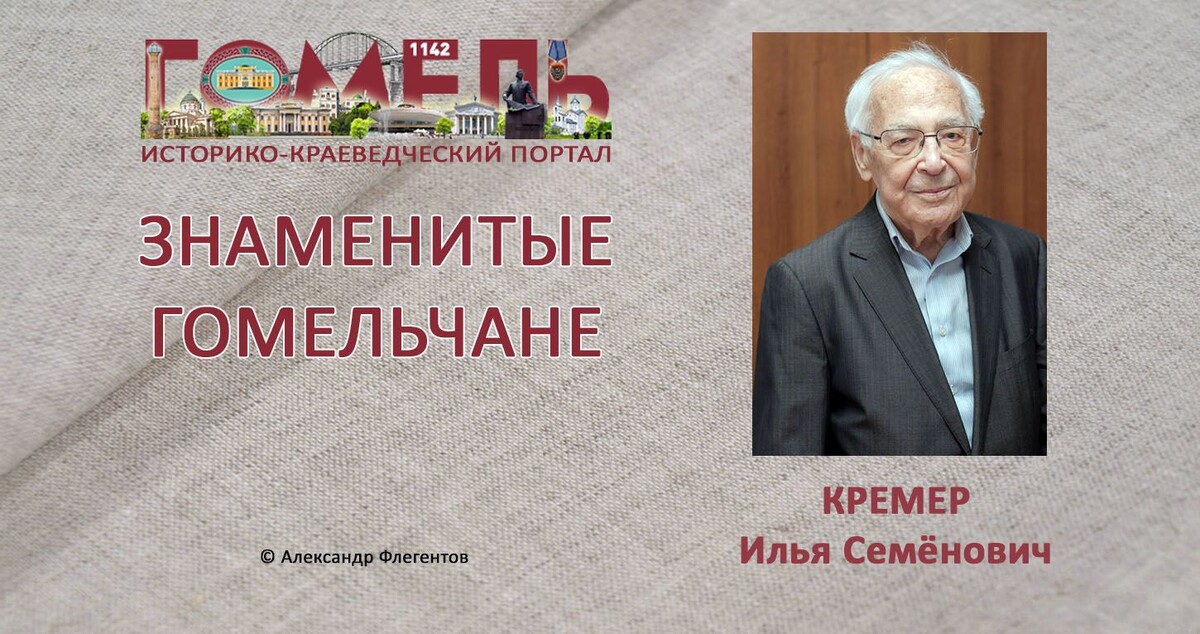 Илья Семёнович Кремер (28.01.1922, Гомель — 23.03.2020, Москва) — советский и российский историк-германист, специалист по истории международных отношений. Доктор исторических наук, профессор. Родился в семье служащего. С 1939 года учился на историческом факультете Ленинградского университета, с 1940 — на историческом факультете Московского университета. В июле-августе 1941 года работал на строительстве укреплений в Рославле (по р. Десна), затем — зарядчиком аккумуляторов для «Катюш» на московском заводе «Красная Пресня». Осенью 1941 года не прошёл по зрению в состав студенческого лыжного отряда, создававшегося для защиты города. В 1941-1943 годах работал на авиазаводе токарем, контролёром ОТК. С июля 1943 года, по окончании 3-го курса МГУ, служил в Красной Армии. С лета 1944 года — на 1-м Белорусском фронте (Хелм — Люблин — Варшава — Познань — Берлин) в должности командира зенитного орудия. С конца апреля 1945 года — переводчик в составе оперативной группы штаба 5-го зени