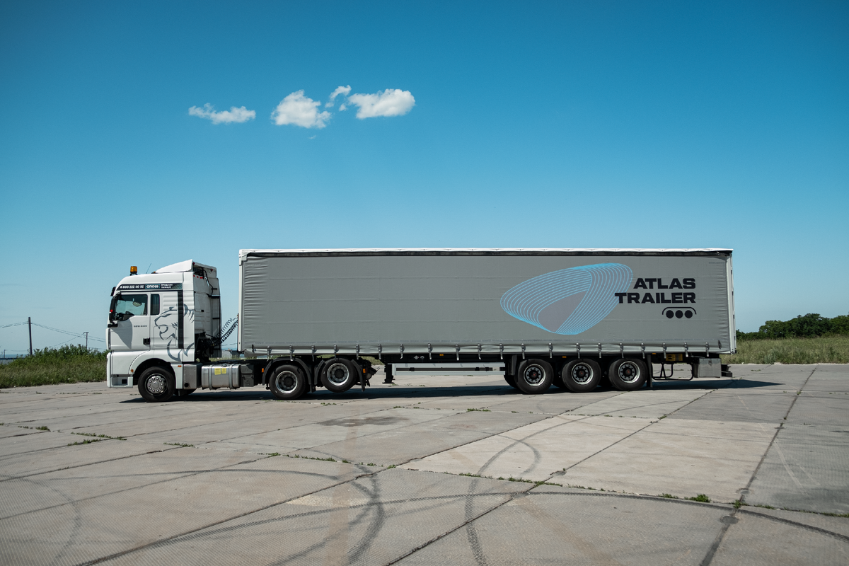 Основу полуприцепов, производимых компанией «Атлас Трейлер», составляет прочная сварная рама по схеме лонжерон в лонжероне. Оси с пневматической подвеской и дисковым тормозом. Такая подвеска отличается жесткостью и показывает высокие эксплуатационные качества. Верхняя часть представляет собой кузовную надстройку, так называемую «штору», своей компоновкой отвечающую всем современным требованиям автоперевозок, как по возможности трансформации, так и по объему груза. Вместимость кузовной надстройки составляет 90 кубических метра или 33 европалета. Крыша и борта полуприцепа сдвигаются отдельно, что удобно при погрузке-разгрузке как с боков, так и с верхней части. Загрузку и выгрузку можно проводить также через задние ворота.