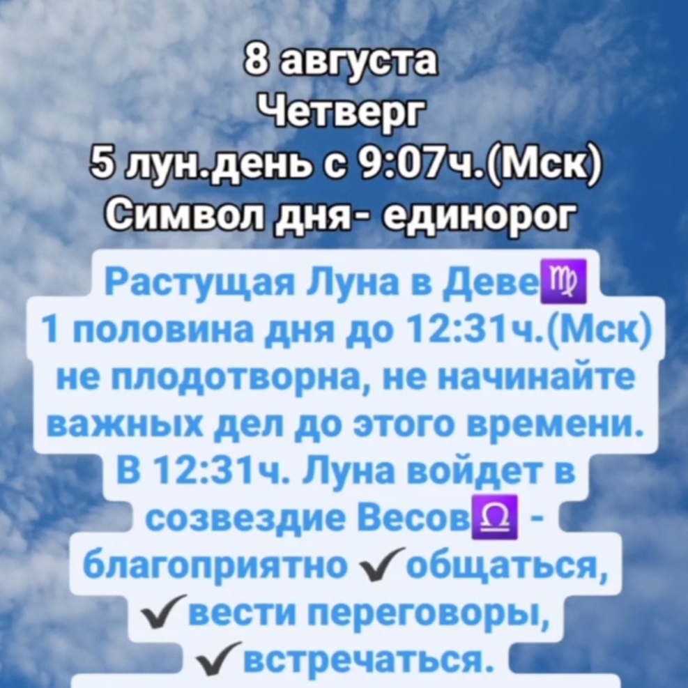 Растущая Луна в Деве♍️ 1 половина дня до 12:31ч.(Мск) не плодотворна, не начинайте важных дел до этого времени. В 12:31ч. Луна войдет в созвездие Весов♎️ - благоприятно ✔️общаться, ✔️вести переговоры, ✔️встречаться. Вечером могут навалиться мрачные мысли, кажется, что все против! Не делайте поспешных выводов, ведь утро вечера мудренее💯. Сны предупреждающие, могут фигурировать родители ✅️стрижка ✅️покупки #гороскоп #астрология #луна #астрологияонлайн #астропрогноз #овен #телец #близнецы #рак #лев #дева #весы #скорпион #стрелец #козерог #водолей #рыбы #затмениесолнца #солнечноезатмение #затмение #новолуниевблизнецах #загадываемжелания #загадайжелание #желание #Венера #мечтысбываются #полнолуние