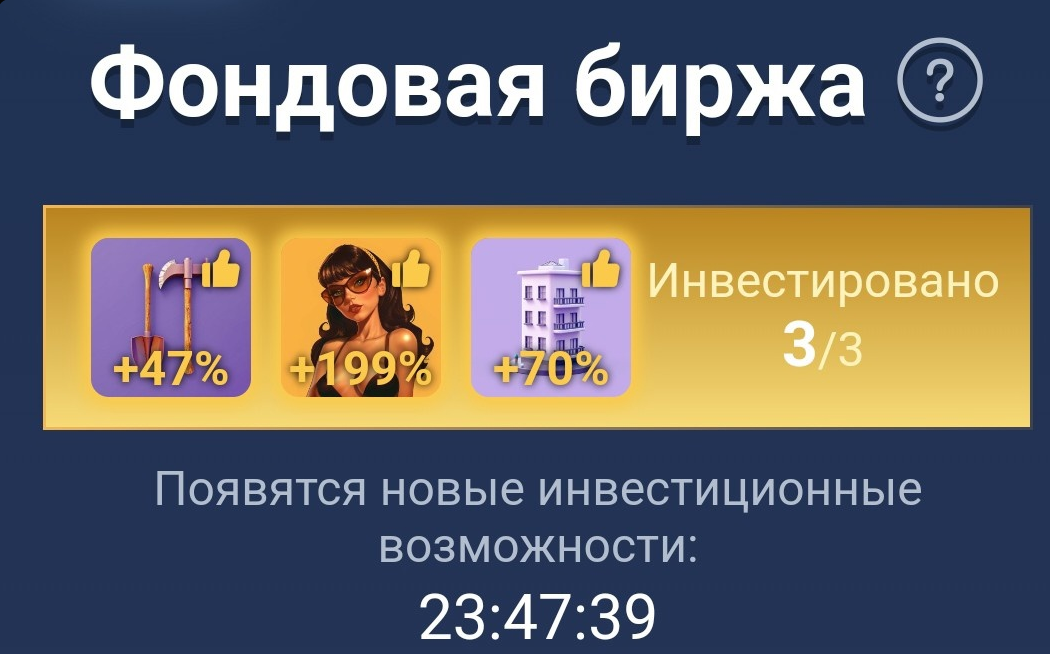 Для ввода комбо зайдите в раздел "Город" -> "Фондовая биржа" и инвестируйте свои средства в указанные фонды. Это позволит вам максимально увеличить свою прибыль в игре.
