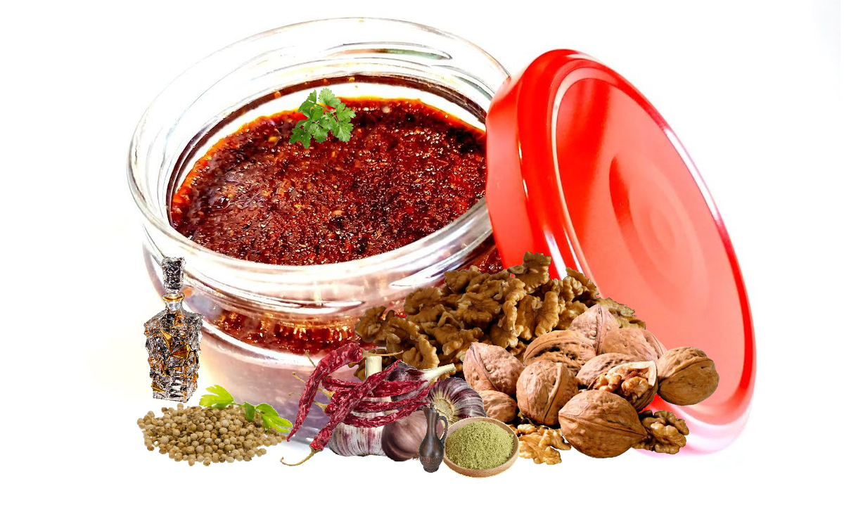 Все что нужно - вот эта паста. Обед с ней получится не менее вкусным и насыщенным. Готовится она за 5 минут и в любое время года. Ингредиенты не дефицитные, их всегда можно купить в любой точке мира. А продукт выходит действительно уникальным. Его так же можно вмешать в сливочное масло, и будет прекрасная бутербродная смесь. 1. Чеснок натереть на мелкой терке. Добавить сахар, морскую соль, молотый перец чили, хлопья перца чили, молотую паприку, черный перец, хмели сунели, кориандр и винный уксус. 2. Жареные грецкие орехи измельчить – можно в пакете скалкой или потолочь в ступке. Пересыпать их к общей массе. 3. В подсолнечном масле пожарить полукольца репчатого лука до прозрачности. После чего его вытащить, он уже не понадобится. А кипящее масло влить к остальным продуктам. 4. Хорошенько перемешать, переложить пасту в чистую сухую банку под край, закрыть крышкой (не консервировать) и убрать в холодильник на хранение. 5. Паста в холодильнике может храниться годами.