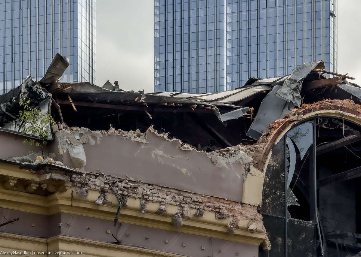 Нет, это не распоряжение из командования ВСУ. Это всего лишь продолжающиеся экзерсисы эффективных столичных управленцев. В который уж раз дни и ночи длинных ковшей оборачиваются потерей очередного ценного объекта в угоду меркантильным интересам мэрии. Новая цель - историческое здание бывшего кинотеатра "Красная Пресня", расположенное на территории одноимённого парка, по адресу: улица Мантулинская, 5. Вот так оно выглядит в эти дни. Строение с 2013 года никак не использовалось и жители района создали петицию о его передаче в собственность города с целью обустройства в нём культурно-досугового центра. Поначалу это вроде бы возымело эффект, однако в дальнейшем всё пошло по совершенно другим рельсам - без каких-либо предупреждений кинотеатр принялись уничтожать. Информационный щит имеет сообщить: это вовсе не снос, а некий капитальный ремонт. Вот вы бы хотели подобный ремонт в своём доме? Сейчас ещё можно лицезреть кинотеатр с обратной стороны, но недалёк день, когда идиллическая картинка