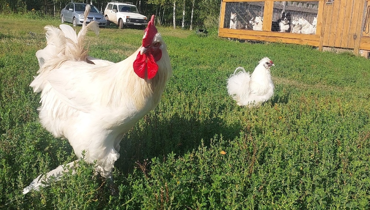 Около 100 лет назад норвежский зоолог Торлейф Шельдеруп-Эббе в своей докторской диссертации описал иерархию кур и ввел термин «порядок клевания». И, если я не ошибаюсь, речь шла о линейной иерархии, или, попросту говоря, о четкой субординции, где есть главная птица, которой все уступают, и самая «низкоранговая» птица, которую бьют все. А остальные четко распределены между ними. Потом эти идеи перекочевали и в наблюдения за волками, оттуда – в кинологию и, кажется, вообще распространились повсеместно. Но речь сейчас не об этом. Речь – о курах, о тех, с кого все и началось. Правда, в силу специфики наших животных я буду говорить о петухах. Цезарь уже спокойно гуляет без присмотра, поэтому я украдкой то и дело наблюдаю за его взаимоотношениями с другими сородичами. И вот что недавно меня удивило: Беша – единственный петух, рядом с которым белый китайский шелковый стоит рядом и даже позволяет себе есть. Почему удивило? Да потому что Беша на самом деле самый рьяный из всех петухов, и ему об
