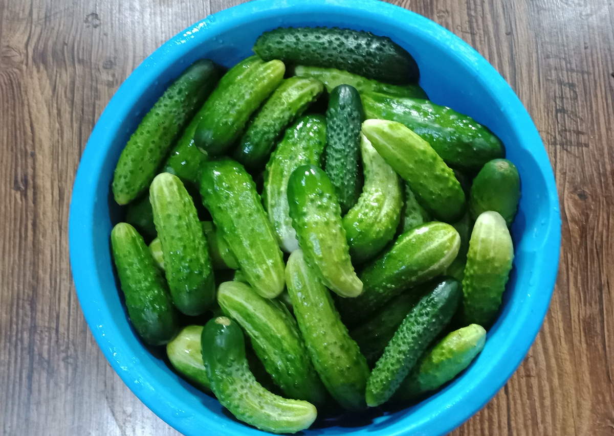 Данный рецепт я очень долго подбирала, так как я люблю именно покупные маринованные огурцы, мало какие домашние маринованные огурцы мне понравились. Я больше предпочитаю соленые домашние огурчики. И поэтому через кучу проб и ошибок, я подобрала этот рецепт. И вот уже несколько лет мы только так маринуем. Ингредиенты: Огурцы Соль Сахар Хрен Укроп Лист смородины (не обязательно, если есть под рукой, то можно добавить) Перец душистый горошек Перец черный горошек Лавровый лист Гвоздика (специя, не цветок) Чеснок Приготовление: Огурцы замачиваем на два часа. Этим временем подготавливаем банки и крышки, моем, стерилизуем. Далее огурцы хорошо промываем (я это делаю при помощи поролоновой губки). Чеснок и зелень так же промываем и очищаем. Можно взять сухие специи (хрен, чеснок и укроп). На дно стерилизованной банки укладываем хрен (можно корень, можно зелень), укроп (зонтик, веточки или семена), лист смородины – 2 шт., чеснок – 4 зубчика, гвоздика (специя) – 2 шт. перец черный горошек – 5 шт