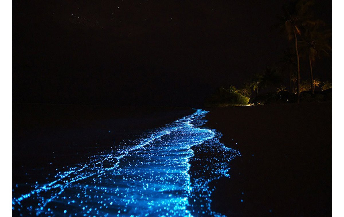 Остров Ваадху-филиал звездного неба на земле. Светящиеся пляжи и безграничный Индийский Океан. Уникальная природная иллюминация в действии. Вам посчастливилось попасть на Мальдивы? Отлично! Безбрежный Океан, классические тропики, уютный отель, ну, в общем, всё как всегда. Искупались в Индийском океане, понежились на пляже, пообедали в ресторане.