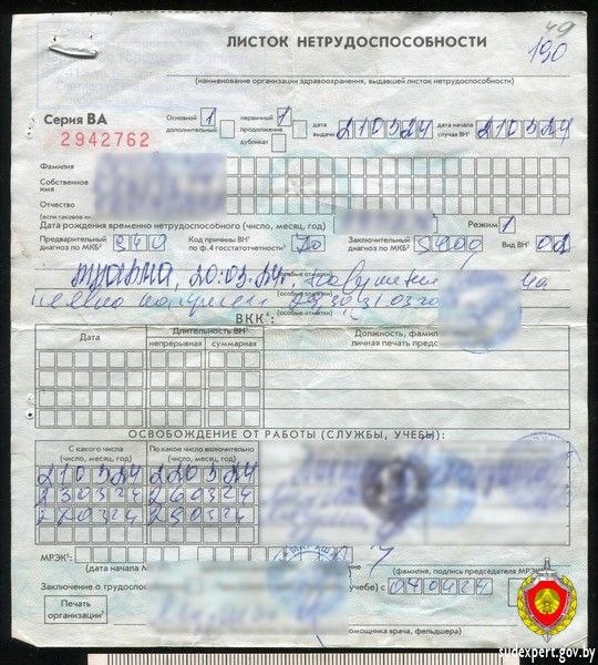 В июне в Светлогорский РОВД поступил материал проверки в отношении женщины, которая, согласно табелю учета рабочего времени за апрель 2024 года, отсутствовала на рабочем месте, допускала прогулы. При предъявлении листка нетрудоспособности работодателю, у последнего возникли сомнения в подлинности даты, указанной в графе «Приступить к работе (службе, учебе)». Сотрудниками милиции листок нетрудоспособности изъят и направлен в Государственный комитет судебных экспертиз для проведения судебной технической экспертизы документов. Судебными экспертами различие в оттенке и микроструктуре штрихов, глубине рельефа штрихов. Штрихи сине-фиолетового цвета со светлым оттенком по своей конфигурации образуют цифру «1» и с остальными записями светлого оттенка образуют запись первоначального содержания – «01 04 24». Работница призналась, что внесла изменения в листок нетрудоспособности, так как употребляла алкоголь и не хотела выходить на работу.