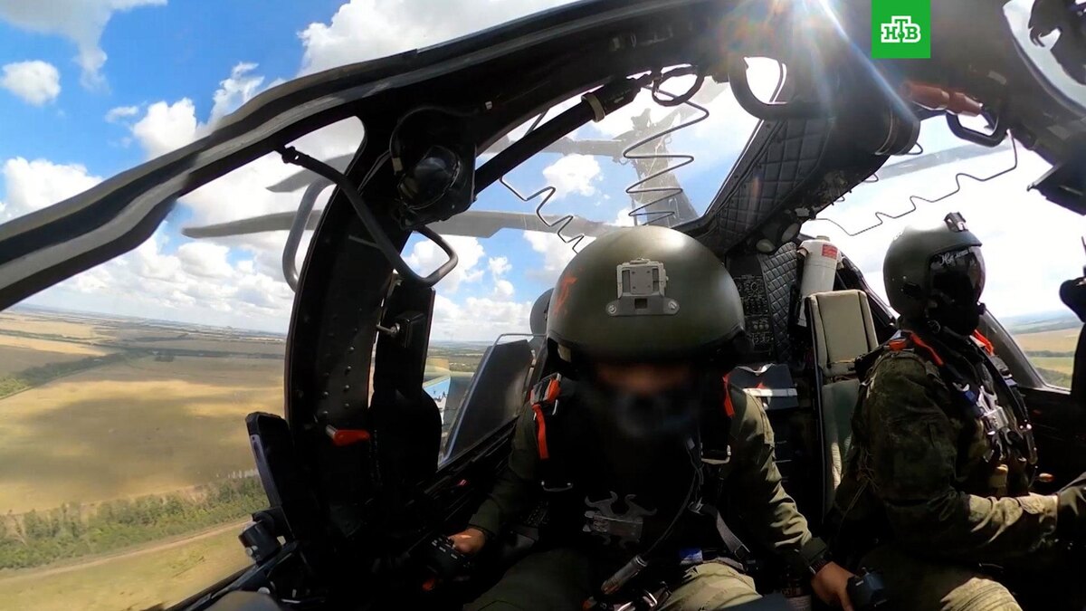 [ Смотреть видео на сайте НТВ ] Минобороны сообщило об авиаударах по личному составу и военной технике подразделений ВСУ на границе с Курской областью. Министерство показало кадры работы вертолетов Ка-52. Удары наносились неуправляемыми авиационными ракетами С-8 и управляемыми авиационными ракетами «Вихрь». Как отметили в ведомстве, после ударов экипажи выполнили противоракетный маневр, выпустили тепловые ловушки и вернулись на аэродром вылета. Все указанные цели были успешно поражены. [ Смотреть видео на сайте НТВ ]