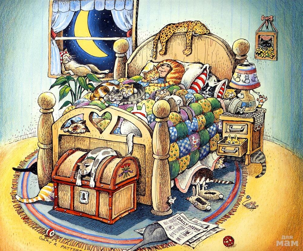Наконец-то я нашла своё счастье. Меня любят, ценят, меня обожают! Никто рядом не сопит, не храпит, не дышит перегаром. Я окружена нежностью, мягкостью, пушистостью и счастьем! ***** Почему кошки не летают? Почему кошки не летают как птицы? Я бы вот разбежалась и полетела. Ой, лечу! Правда, лечу! ***** Просыпайся, малышка, папа вкусный завтрак принёс. ***** Вот чистюли! Хоть бы одну грязную тарелку оставили для кота. Никакого милосердия к животному. Эгоисты. ***** Как я хочу спать и как вы мне оба надоели! У меня такое чувство, будто меня навсегда приковали к кошачьим лоткам и мискам. ***** Эй, мышак, ты где? Да здесь я в норе. А от кого прячешься? От котов. Ну, ты даёшь! Мы ж с тобой друганы, всю ночь по дому носились. Когда залезаю в нору, у меня инстинкт самосохранения срабатывает. ***** Такая ещё темень на дворе, а будильник трезвонит посреди ночи. Так хочу спать, что глаза открыть не могу. ***** День рождения они мой празднуют. На руках меня таскали, гладили, игрушек надарили. Сей