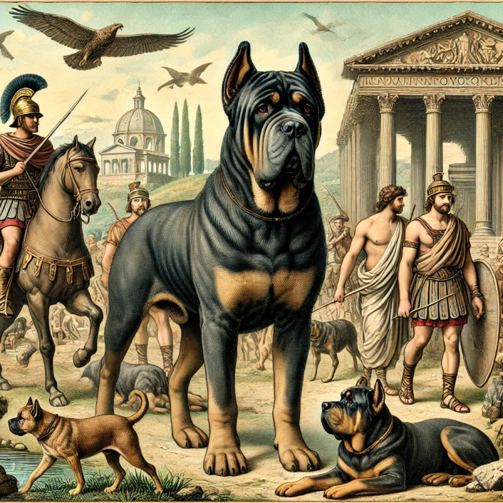 Кане-корсо имеет древние итальянские корни, восходящие к временам Римской империи. Эти собаки использовались для охраны и охоты на крупную дичь. Слово "корсо" происходит от латинского "cohors", что означает "защитник" или "хранитель".