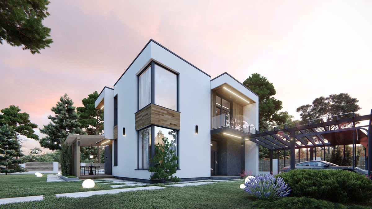 Проект дома с плоской кровлей, общей площадью 149 кв.м. С зенитным фонарем над лестничным холлом и выходом на эксплуатируемую крышу, которую можно доработать и до озелененной. Компактный в плане дом вмещает 5 спален, в том числе и мастер-зону, кухню-гостиную 34 кв.м и частично крытую террасу. Угловое окно в зоне кухни и спальни дает панорамный обзор на участок и добавляет красивый акцент на фасад кубистической архитектуры. Узнать подробнее про проект, можно написав нам в Телеграм или оставить заявку на обратный звонок на Сайте ✨ Сделайте свой дом местом, куда всегда хочется возвращаться! Больше наших проектов → https://lproject.house/ Команда LPROJECT