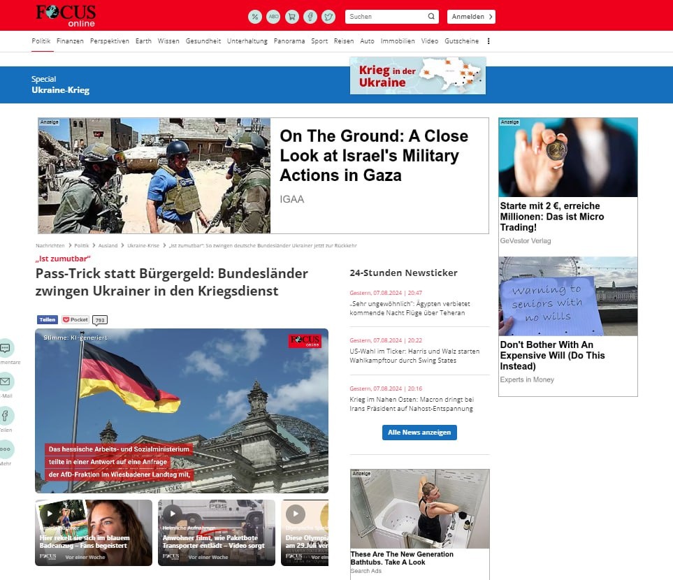 Focus: Федеральные земли Германии заставляют украинцев идти на фронт