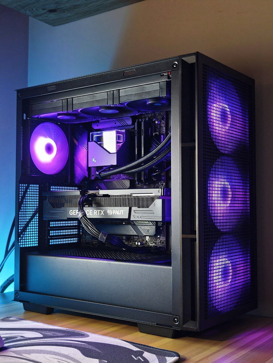 Корпус предлагает просторный интерьер для установки мощных компонентов и эффективную систему охлаждения с предустановленными ARGB вентиляторами. Большие окна из закаленного стекла и настраиваемая подсветка придают сборке стильный внешний вид.