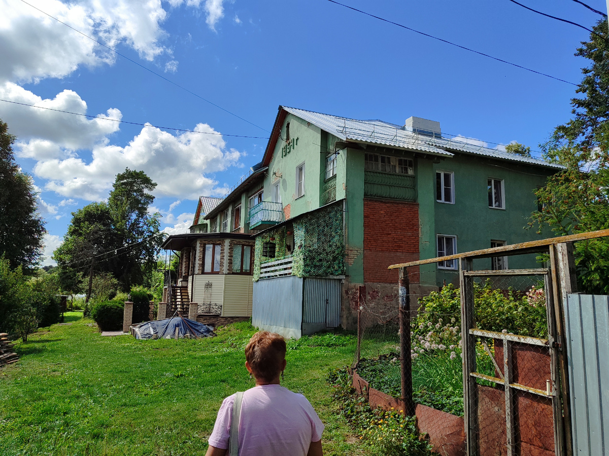 Мы посмотрели куда махнул мужичок. В невзрачном двухэтажном доме с плоскими фасадами