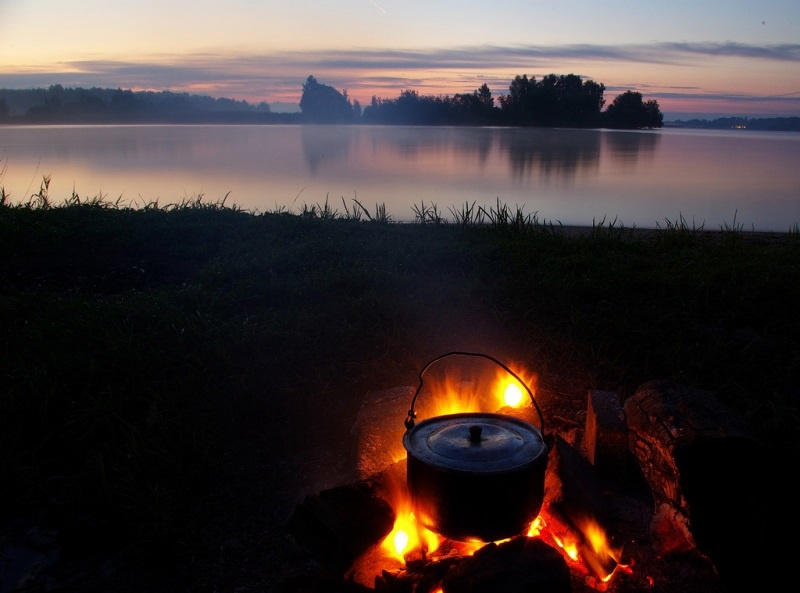 У меня дома приготовили спиннинги, ножи, лёгкий топорик, плащ-палатку, пару коробков залитых воском спичек, фляжки с водой, котелок и ложки. Еды много не брали –буханка хлеба, шмат солёного сала, отрезанного дядей Васей, пяток картофелин, да соли спичечный коробок -решили, что если проголодаемся, то всегда подцепим щучку или окушка, тем более, что много ли на сутки надо…