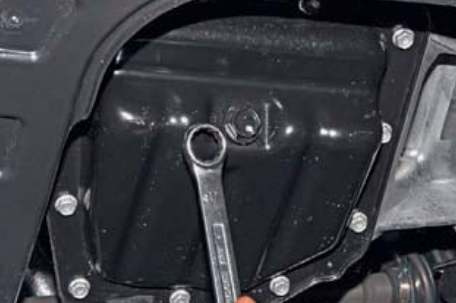 Замену масла в двигателе выполняем в соответствии с регламентом технического обслуживания каждые 15 тыс. км пробега. Работу выполняем на смотровой канаве или эстакаде. Замену проводим на неработающем двигателе (лучше сразу после поездки), пока масло не остыло. Снимаем крышку маслозаливной горловины двигателя. Снизу автомобиля очищаем от грязи крышку поддона картера вокруг пробки сливного отверстия. Накидным ключом «на 17» ослабляем затяжку пробки сливного отверстия. Подставляем под сливное отверстие широкую емкость для отработавшего масла объемом не менее 3,5 л. Отвернув пробку вручную, сливаем масло. Сливаем масло не менее 10 мин. Проверяем состояние уплотнительной алюминиевой шайбы пробки. Если шайба сильно деформирована или изношена, заменяем ее новой. Протерев пробку, заворачиваем и затягиваем ее. Удаляем потеки масла с крышки поддона картера двигателя. Подставляем емкость под масляный фильтр и отворачиваем его, вращая против часовой стрелки. Если это не удается сделать вручную, то