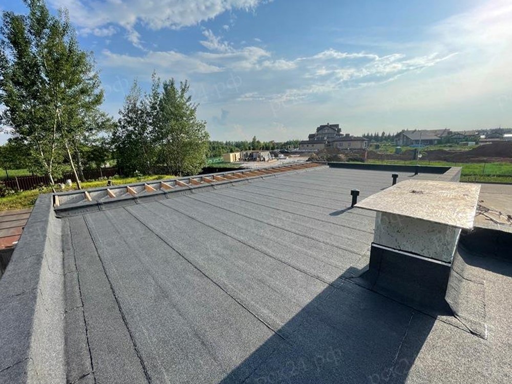 Рассмотрим особенности и преимущества двух популярных вариантов для плоской кровли – битумной гидроизоляции и ПВХ мембраны. Преимущества: 1. Прочность и долговечность: Битумные покрытия зарекомендовали себя как надежный материал, способный служить до 25-30 лет при правильном монтаже и уходе. Это достигается благодаря использованию современных модификаций битума с добавками полимеров, что повышает его устойчивость к атмосферным воздействиям. 2. Устойчивость к низким температурам: В условиях Центральной России, где зимы могут быть суровыми, битумные покрытия демонстрируют отличные эксплуатационные характеристики при низких температурах. 3. Экономичность: Битумные материалы обычно стоят дешевле ПВХ мембран, что делает их привлекательными для бюджетного строительства. Недостатки: 1. Требовательность к основанию: Битумные покрытия требуют тщательно подготовленного основания. Неровности и дефекты поверхности могут привести к повреждению гидроизоляционного слоя. 2. Сложность монтажа: Укладка