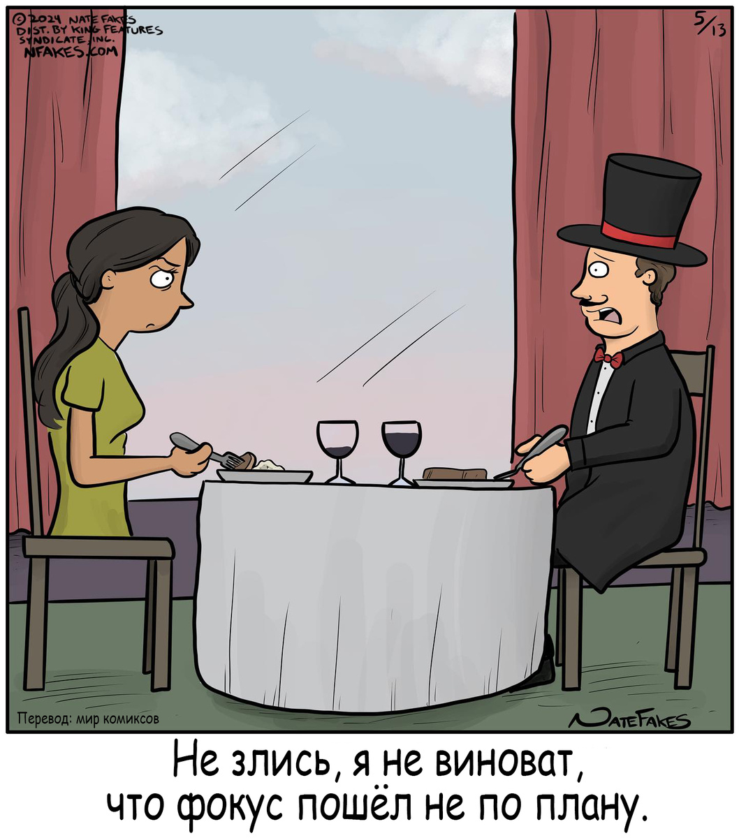 Комиксы – это такой вид искусства, в котором сочетается множество эмоций. Есть истории с долгим сюжетом, есть и коротенькие, но с философской подоплекой. Если не хочется ни того ни другого, день был напряженным и есть только желание посмеяться, расслабиться, нужна подборка работ Нейта Фейкса. Его комиксы – это бездна юмора, очаровательного подтрунивания без капли чернухи. Да, у этого автора нет вообще никаких злободневных или острых тематик. Он лоялен и толерантен, великодушен и смешон, как настоящий клоун. Добрые, в меру трогательные и отменно язвительные нарисованные истории заставят забыть о проблемах и смеяться от души. Нейт Фейкс – художник из Лос-Анджелеса. За свои 40 лет «с хвостиком», он увидел немало интересных ситуаций и накопил солидный багаж веселых историй. Любовь к рисованию у мальчишки была в крови, а затем он умудрился продать свой рисунок однокласснику за 5 баксов, и нашел свою нишу заработка. Желание стать профессиональным карикатуристом, создавать комиксы потребовал