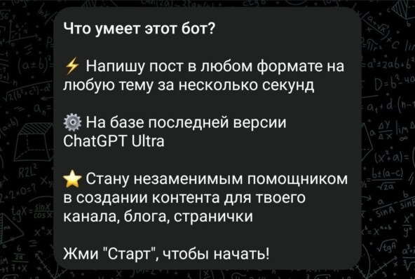 SMM-Помогатор ⚡Напишу пост на любую тему за 5 секунд ⏰ На базе последней версии ChatGPT