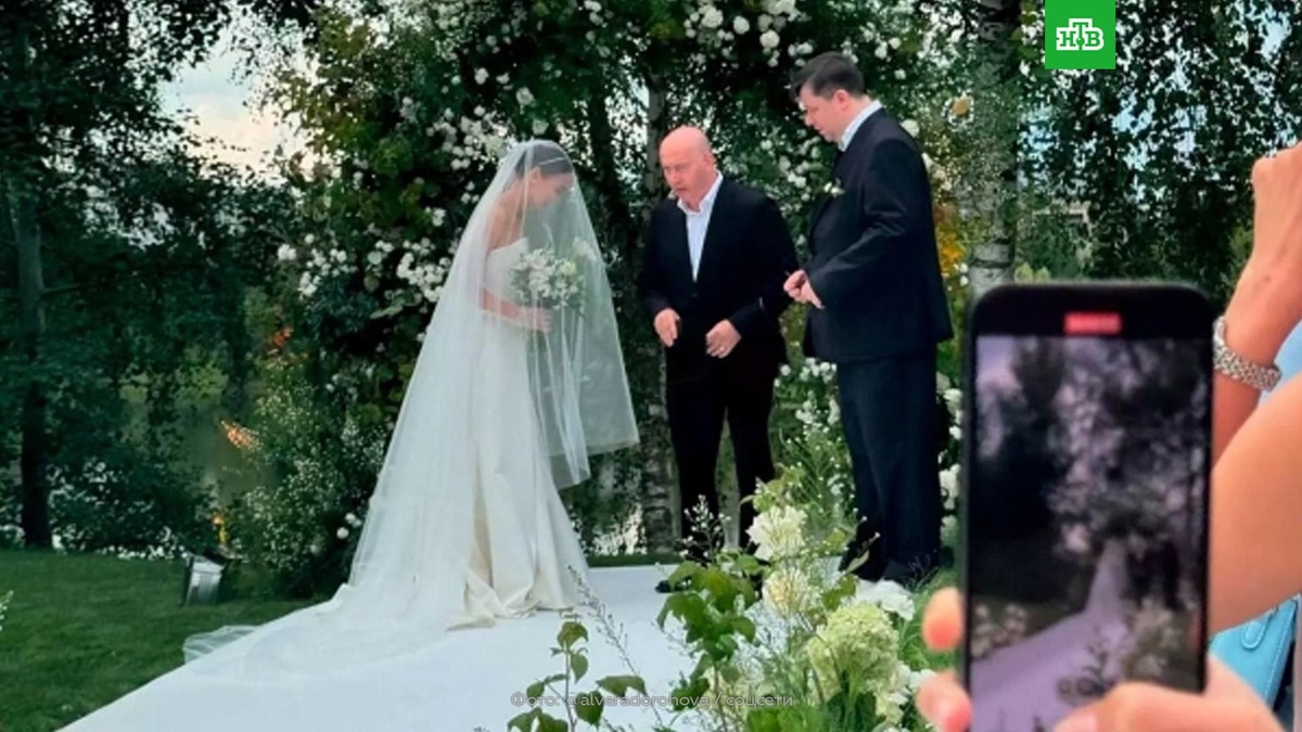 [ Смотреть видео на сайте НТВ ] Гарик Харламов и Катерина Ковальчук расписались в загсе еще в июне, а теперь решили устроить свадебную церемонию. Торжество прошло в подмосковном поселке Agalarov Estate. Декор Гарик Харламов и Катерина Ковальчук выбрали в оливковых тонах, а территорию декорировали живыми белыми цветами. Невеста красовалась в белом платье-бюстье с корсетным верхом и прозрачным шлейфом, а жених выбрал себе строгий костюм. На свадьбе собралось более 50 человек гостей: друзей и родственников пары. Провел церемонию Сергей Бурунов, в роли выездного регистратора он зачитал «брачный контракт», а молодожены обменялись клятвами. Спел на свадьбе и Сосо Павлиашвили. Также на мероприятии присутствовали юмористы и шоумены Зураб Матуа с женой, Андрей Бебуришвили, Игорь Джабраилов, Тимур Батрутдинов, Демис Карибидис, Денис Дорохов и Азамат Мусагалиев с супругами. Молодые исполнили первый танец и разрезали высокий белый торт, первые кусочки получили их мамы. После официальной части Харл