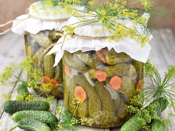 Кисло-сладкие маринованные огурцы, или, как их ещё называют, болгарские огурцы, из года в год становятся всё более популярны в нашей кладовой. Обычно они приходятся по вкусу всем, даже детям. Это простой рецепт, успех которого я могу гарантировать — если вы будете следовать инструкции, болгарские огурцы обязательно получатся, а приготовленные таким образом, они без проблем сохраняются даже несколько лет. Для этого рецепта огурцы выбираем поменьше, максимально чистые, без пятен. Их хорошо моем и очищаем от цветочков или хвостиков. Вылейте в большую кастрюлю или металлическую эмалированную миску уксус и воду, добавьте соль, сахар, перец горошком и семена горчицы, доведите до кипения. Пусть вас не смущает количество уксуса, в итоге он компенсируется сахаром, обеспечивая пикантный вкус. Для болгарских огурцов принято использовать 9-процентный винный уксус, он несколько мягче спиртового. Поэтому, если используете обычный белый спиртовой уксус, я бы советовала 6-процентный. Соль берите кру