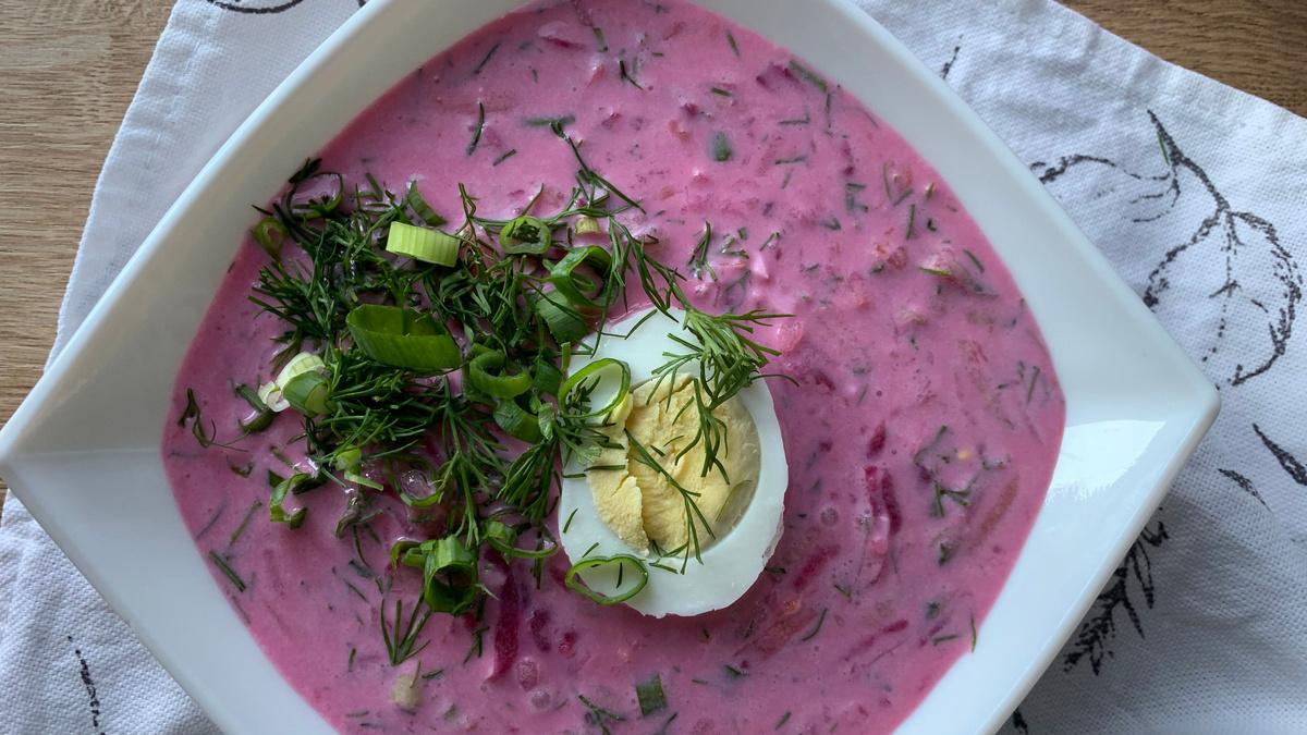 Продолжаем делиться рецептами освежающих блюд и напитков. Ингредиенты: • 900 мл кефира • 180 г сметаны • 3 огурца • 4 яйца • 1/2 пучка зелёного лука и укропа • соль по вкусу • щепотка лимонной кислоты • 1 средняя свёкла • 2 средние картофелины • 2 средние моркови Приготовление. Отвариваем до готовности свёклу, картофель, морковь и яйца. Остужаем и очищаем. На крупной тёрке натираем все овощи и яйца, помещаем в глубокую кастрюлю. Зелень мелко рубим и кладём в общую массу. Добавляем соль по вкусу и лимонную кислоту. Заправляем холодным кефиром и сметаной, хорошо перемешиваем. Густоту можно регулировать, добавив больше или меньше кефира. Ингредиенты: • 3 л кипячёной воды • 1,5 ст. л. цикория • 250 г сахара • 1 ч. л. (без горки) лимонной кислоты • 1 ч. л. (без горки) быстрых дрожжей • 10-16 ягод изюма Приготовление. В глубокой кастрюле доводим воду до кипения, добавляем сахар и перемешиваем до растворения. После добавляем цикорий и снова перемешиваем. Огонь выключаем и в ещё горячую воду д