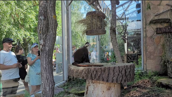 Была проведена полная перезагрузка большого уличного вольера краснохвостых мартышек. В Ленинградском зоопарке показали новый обновлённый вольер, в котором живут мартышки Шмидта. Его концепцию создали сотрудники отделов «Приматы», «Развитие», «Эксплуатация» и «Сантехнический» - они же занимались и подготовкой материалов, и самими работами по реконструкции вольера. Всего монтаж конструкций занял 7 часов. «Что было сделано? Установлены высокие стволы ивы, массивные спилы тополя для подвижных игр и поменьше из липы – для отдыха и кормления. Все элементы соединены между собой, чтобы животные могли свободно передвигаться», - рассказали в зоопарке. Также для того, что мартышкам было комфортнее, для них сделали и неподвижные ветки разной толщины, сложный лабиринт троп и пару качелей из веток клёна, а ещё поставили четыре кормушки-фонаря для более сложной добычи корма. Ранее Peterburg2 писал, что в Лензоопарке показали как отдыхают зелёные игуаны. Читайте на Peterburg2