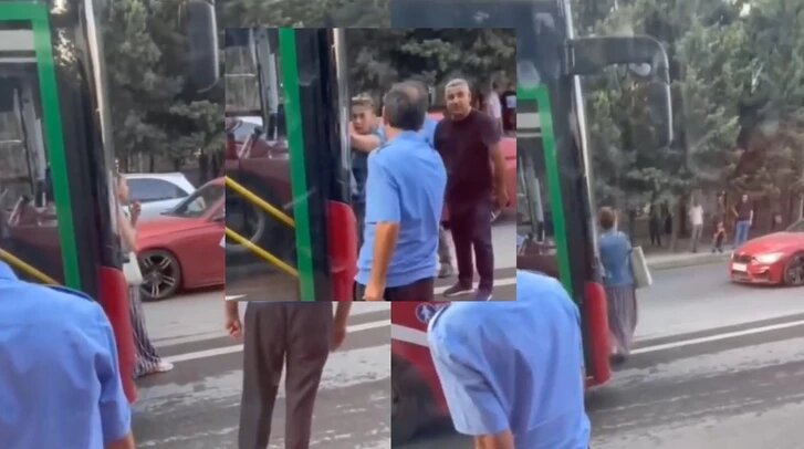Пассажирка против водителя: в Баку женщина перекрыла дорогу автобусу
