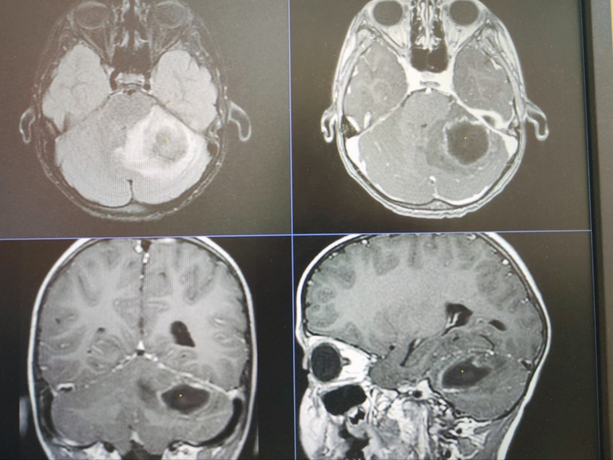 Врачи Оториноларингологического отделения Кировской областной детской клинической больницы поделились удивительной историей, которая произошла в этом году. – В экстренное приемное отделение 7 марта поступил мальчик восьми лет с жалобами на рвоту, боль в животе, слабость, вялость, температуру. Хирурги исключили патологию по своему профилю. Но так как симптомы не проходили, было принято решение сделать МРТ головного мозга. Во время исследования у пациента был обнаружен абсцесс мозжечка, что встречается в практике врачей достаточно редко. Нашим коллегой-нейрохирургом Эдуардом Федоровичем Сырчиным была проведена первая часть операции – вскрытие абсцесса. Далее в операционную были приглашены мы. С первого взгляда было понятно, что это пациент именно по нашему профилю – в ухе виднелся гной и был характерный запах, – рассказала врач-оториноларинголог Детской областной больницы Надежда Стрижова. У пациента был диагностирован отит, он проходил лечение по месту жительства, но заболевание прогрес