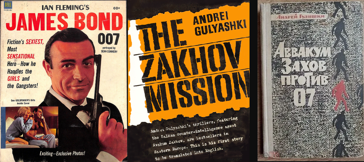 В поисках литературного ответа на растущую мировую популярность фильмов о Бонде советские чиновники обратились к болгарскому писателю Андрею Гуляшки, чей роман 1963 года «Миссия Захова» привлек к нему внимание советских властей как к наиболее вероятному кандидату на создание советского литературного конкурента Джеймсу Бонду. Гуляшки, вероятно, с одобрения и при поддержке КГБ, посетил Лондон в 1966 году и просил у издателя покойного Яна Флеминга разрешения использовать Джеймса Бонда в качестве персонажа в своей новой книге. Его появление в Англии вызвало небольшой резонанс в журнале "Time", на страницах которого прозвучал вопрос: «Кто этот мешковатый болгарин, который слоняется по Бонд-стрит, ныряет в пабы по всему городу и незаметно просачивается в мужские клубы?» Гуляшки потерпел неудачу. Издатель Флеминга не только сразу отказал ему в разрешении использовать Бонда или номер агента 007, но и предпринял незамедлительные шаги по защите своих авторских прав, поручив Кингсли Эмису написать под псевдонимом первый из более чем тридцати пост-флеминговских романов о Бонде.