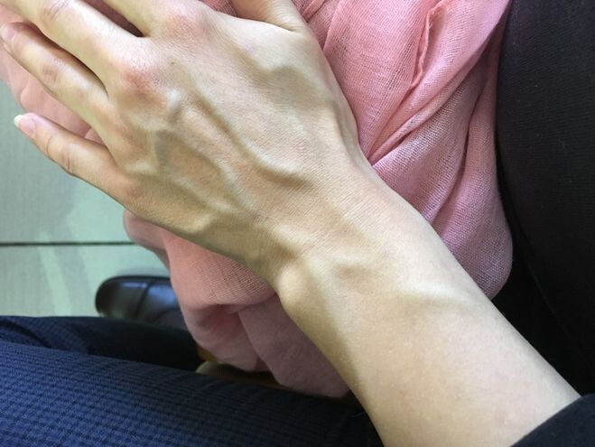 - эпидермис на руках быстрее становятся менее эластичным, поэтому на них выступающие сосуды легко увидеть.