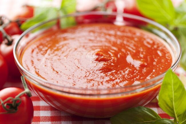 Если урожай помидоров слишком большой, не обязательно ограничиваться только заготовкой солений на зиму. Из томатов можно сделать отличный домашний кетчуп, а по вкусу он будет ничуть не хуже покупного и совершенно точно полезнее и натуральнее. Кроме помидоров понадобится лук, яблоки, сладкий перец и сахар. Яблоки выбирайте кислых и кисло-сладких сортов. Из указанного количества ингредиентов получается две банки объемом 1 л. 1) Помойте помидоры, яблоки, перец и лук. Снимите с лука шелуху. Удалите у перца плодоножку и семена. Подготовьте мясорубку, мелкое сито, стерильную баночку и крышку. 2) Разрежьте яблоки на четвертинки. Уберите хвостики и семечки. 3) Нарежьте лук и перец произвольными кусочками. Разрежьте помидоры на половинки или четвертинки в зависимости от размера. 4) Пропустите все нарезанные продукты через мясорубку. 5) Переложите измельченную массу в кастрюлю и поставьте на плиту. Тушите на медленном огне 1 час. Снимите с плиты и остудите. 6) Пропустите массу через мелкое сито.