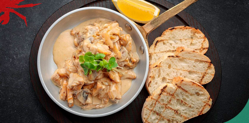 Рецепт: Рапаны в сливочном соусе с чесноком