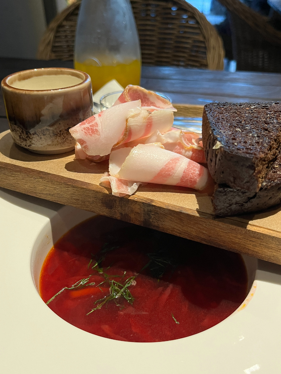 — Жиденько, конечно в заведениях сложно найти борщ "чтоб ложка стояла", но за 500р в порцию ожидания были побольше;