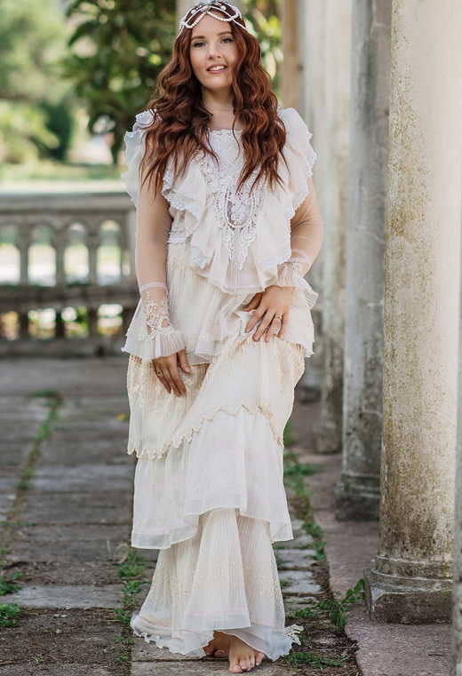 Это просто потрясающая съёмка! Её элегантный образ идеально сочетается с выбранной локацией